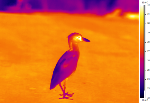 For presentation purposes and for publication purposes, however, a visually appealing colour might be appropriate (instead of greyscale). My own favourite palette is the Iron palette, as demonstrated in the following image of Yellow Crowned Night Heron from Galapagos: